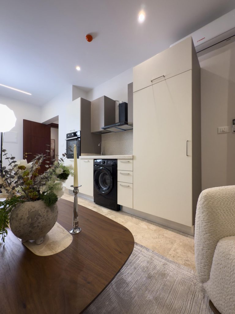 كل استودیو یحتوي على: مكان للنوم، مكان للجلوس، مطبخ صغیر، حمام خاص.